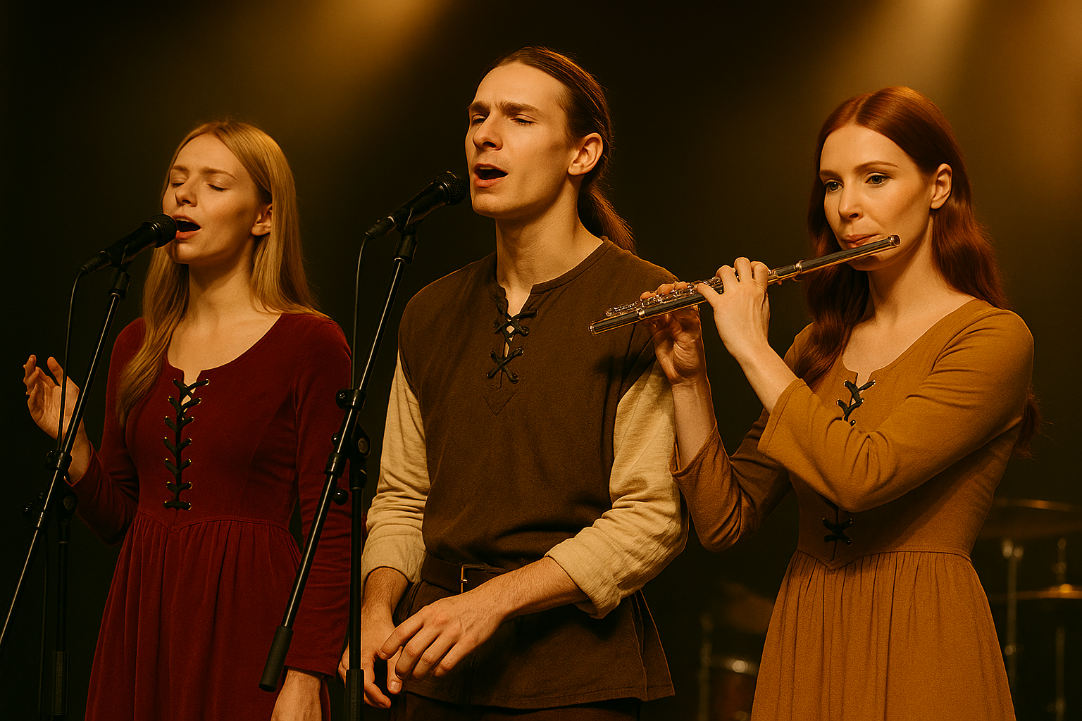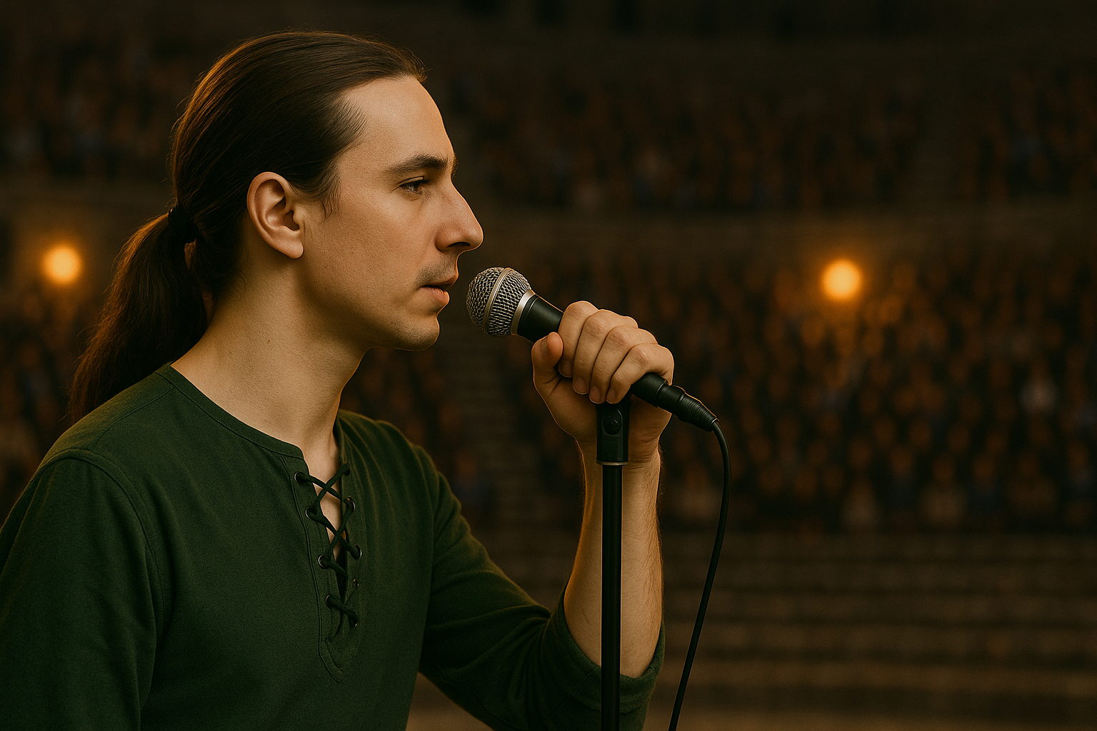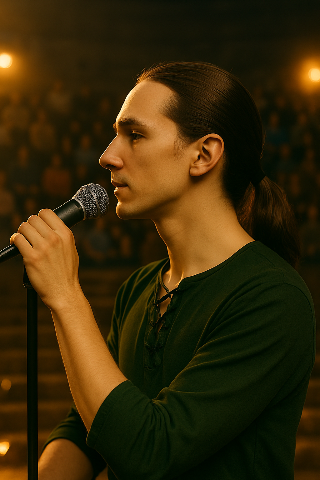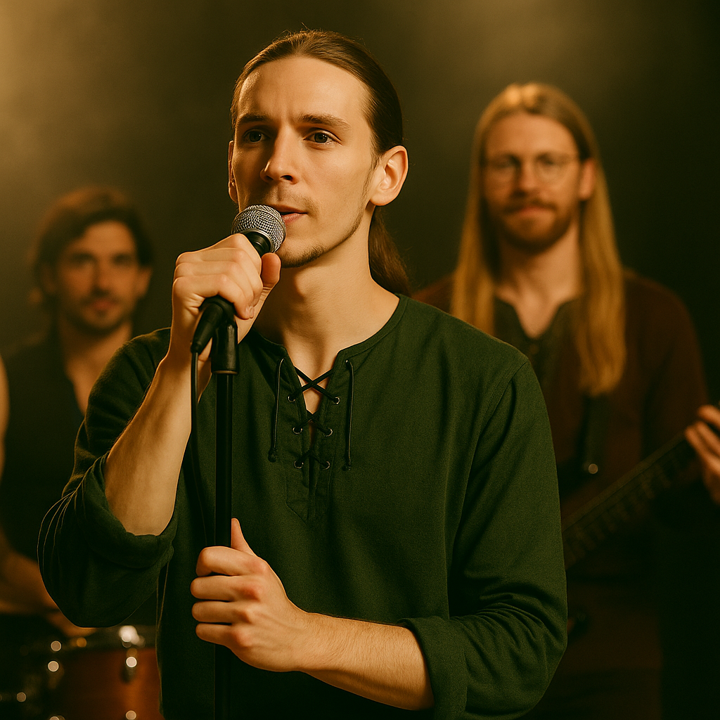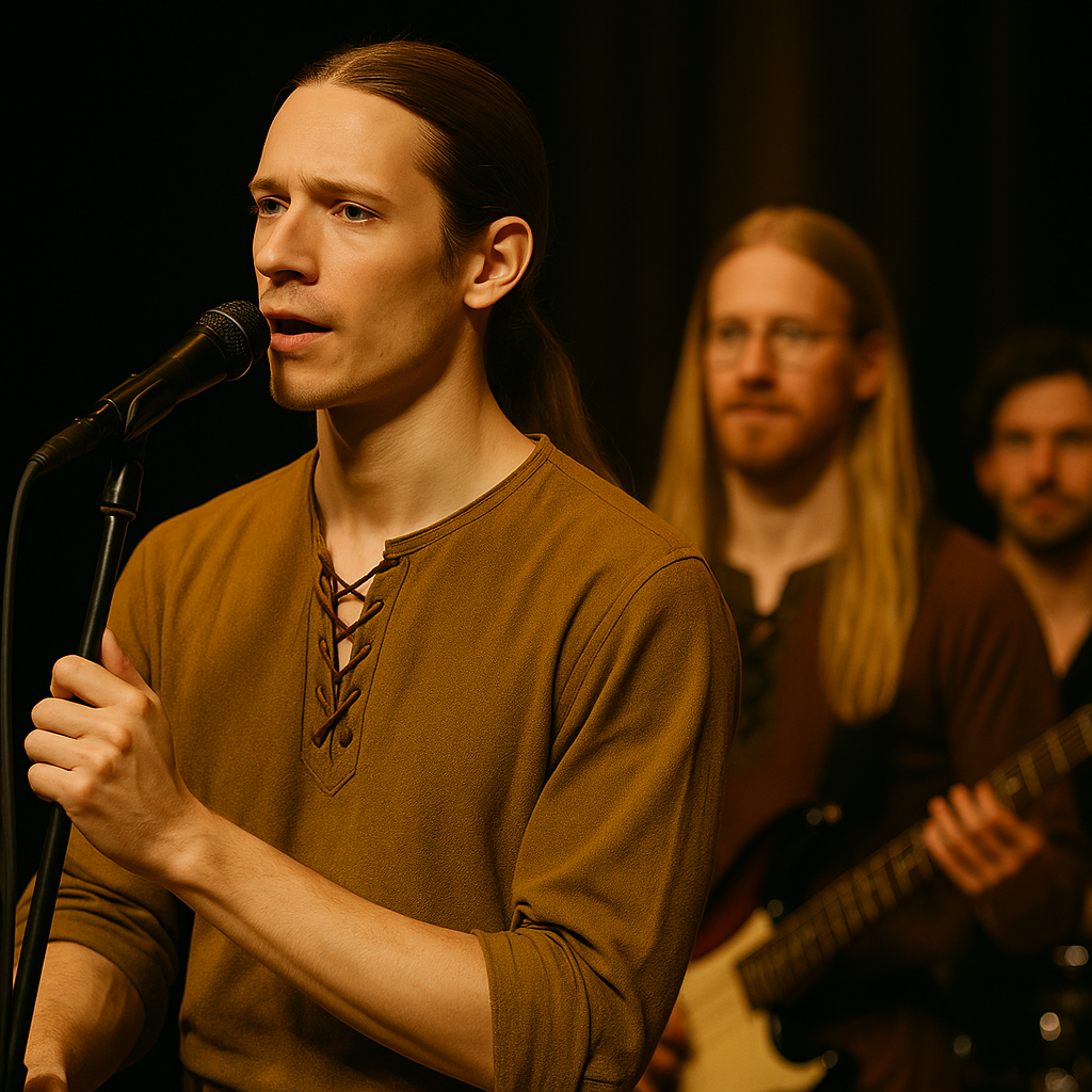 Geoffrey plays the acoustic guitar and sings lead on many Jouste songs. He is the male focal point often playing several characters in Rise Of The Red King. He sings harmony vocals with Nigel, Eva and Ludze while contributing fluid rhythm guitar lines and beautiful Celtic renaissance finger picking solos.