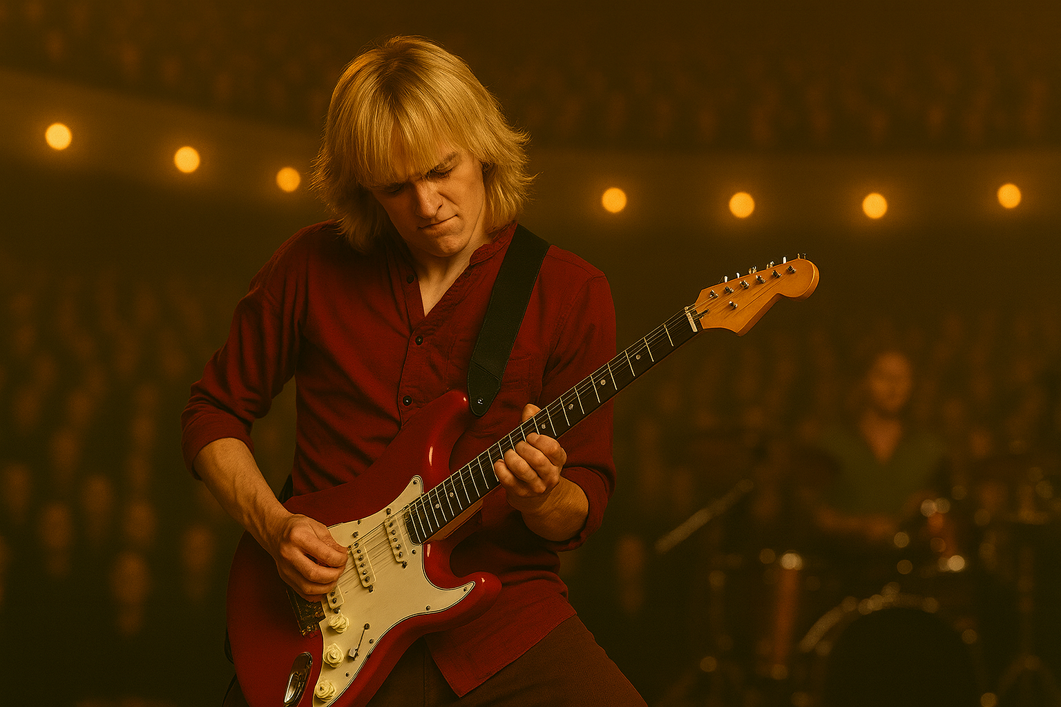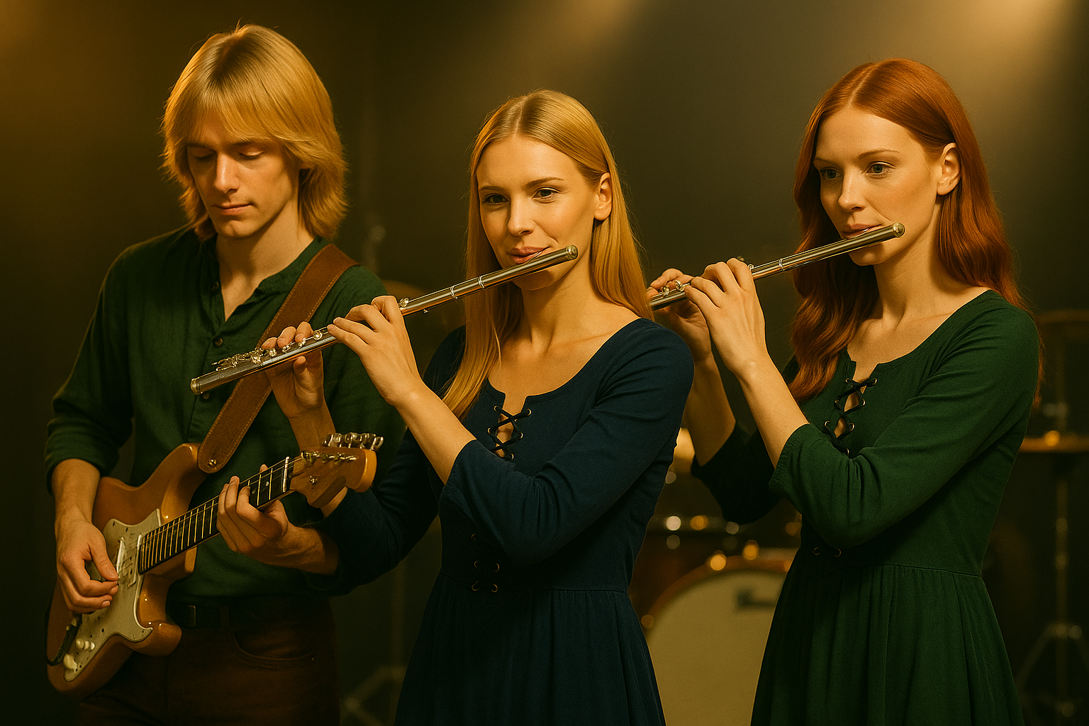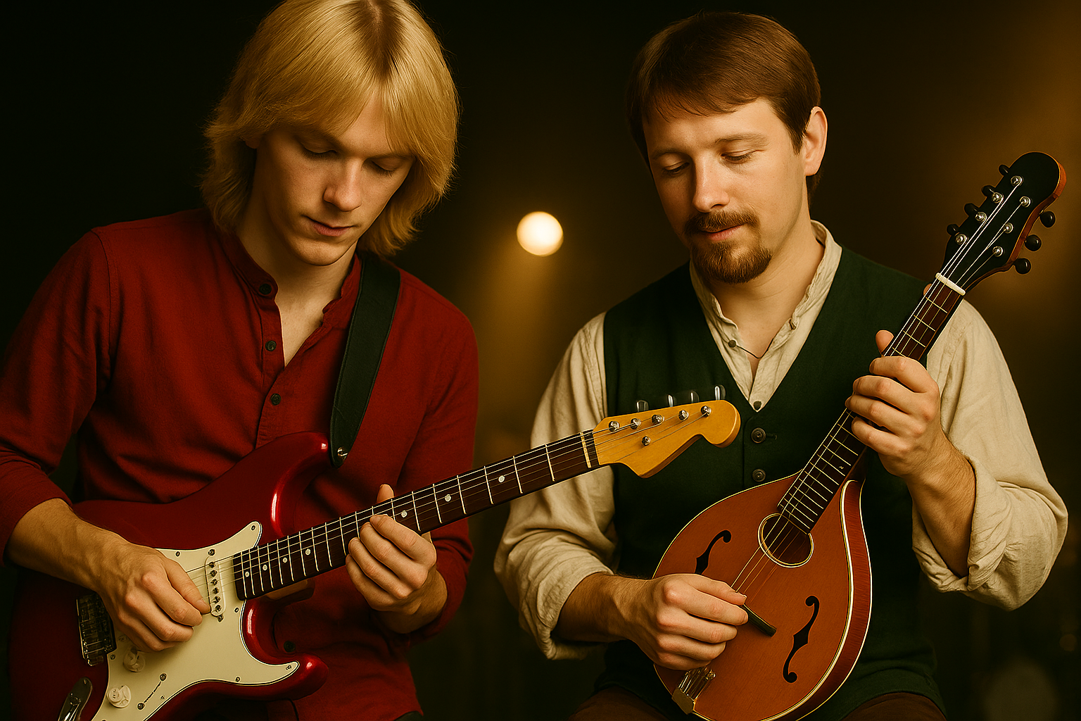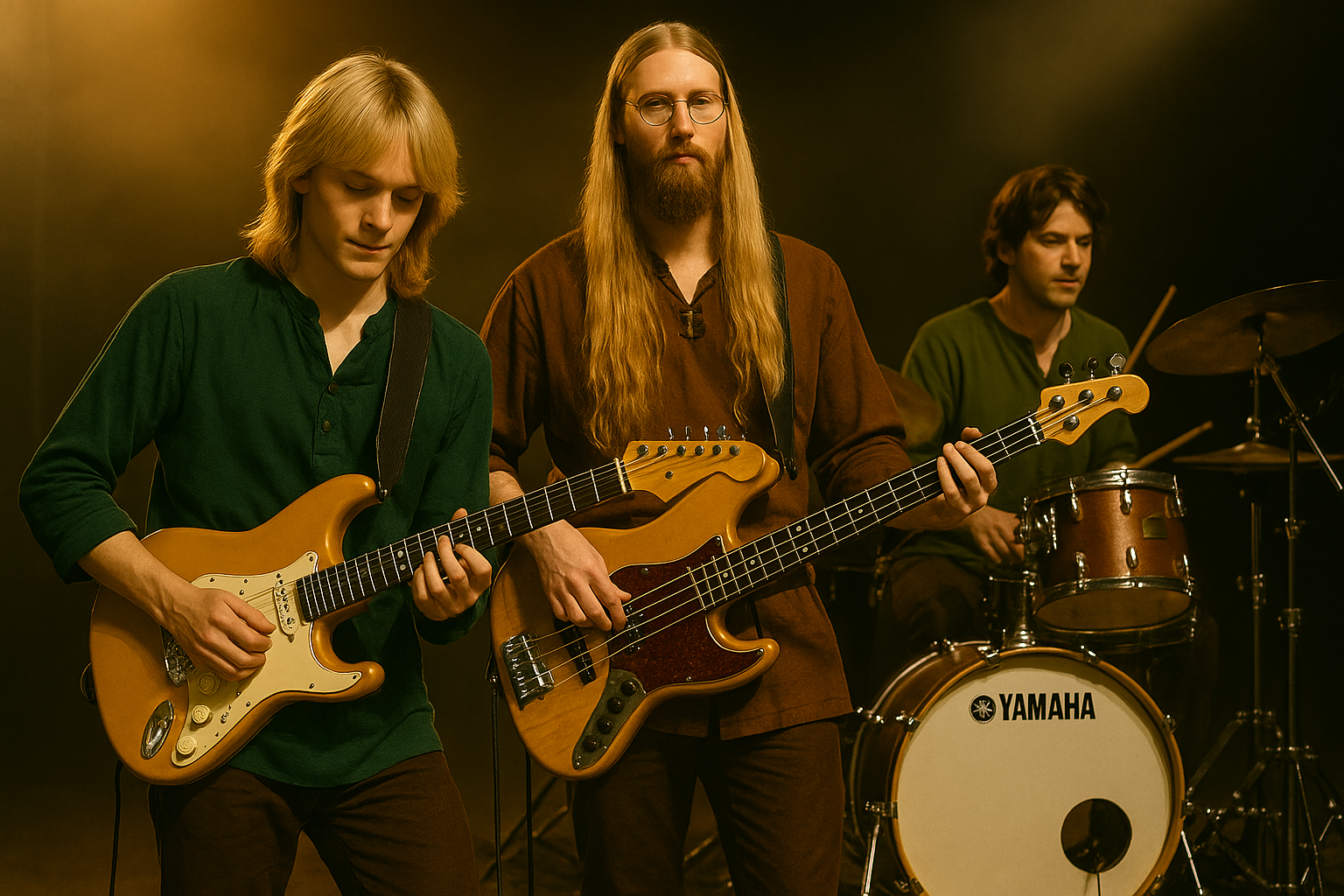 Mick plays guitar for Jouste, both electric and acoustic. His style blends melody and atmosphere, supporting the band’s medieval Celtic and progressive rock sound with versatile rhythm work and expressive classic rock tones.