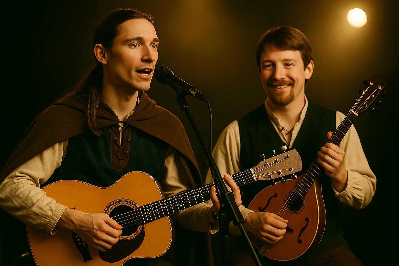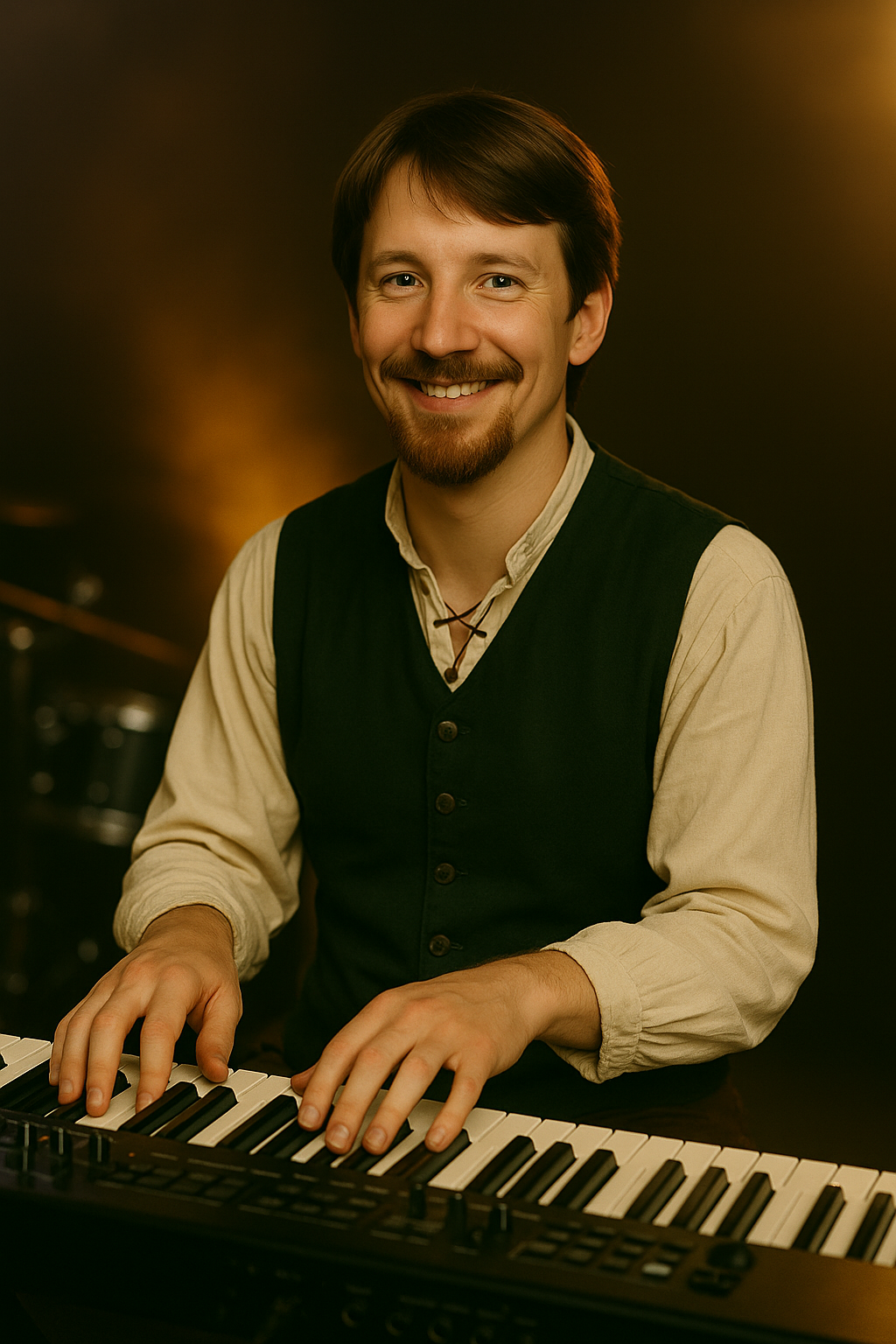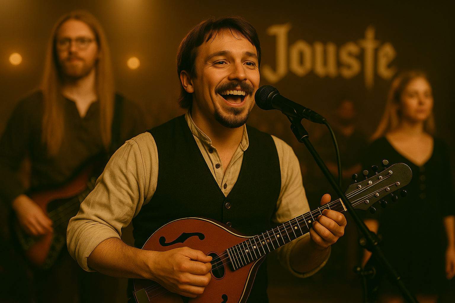 The most versatile member of Jouste, Nigel plays mandolin, guitar and keyboards. He also sings harmony vocals with Geoffrey, Ludze and Eva, taking the lead on Dragons Dance and Bishop's Curse. He can often be heard singing stirring backup vocals in most Jouste songs.